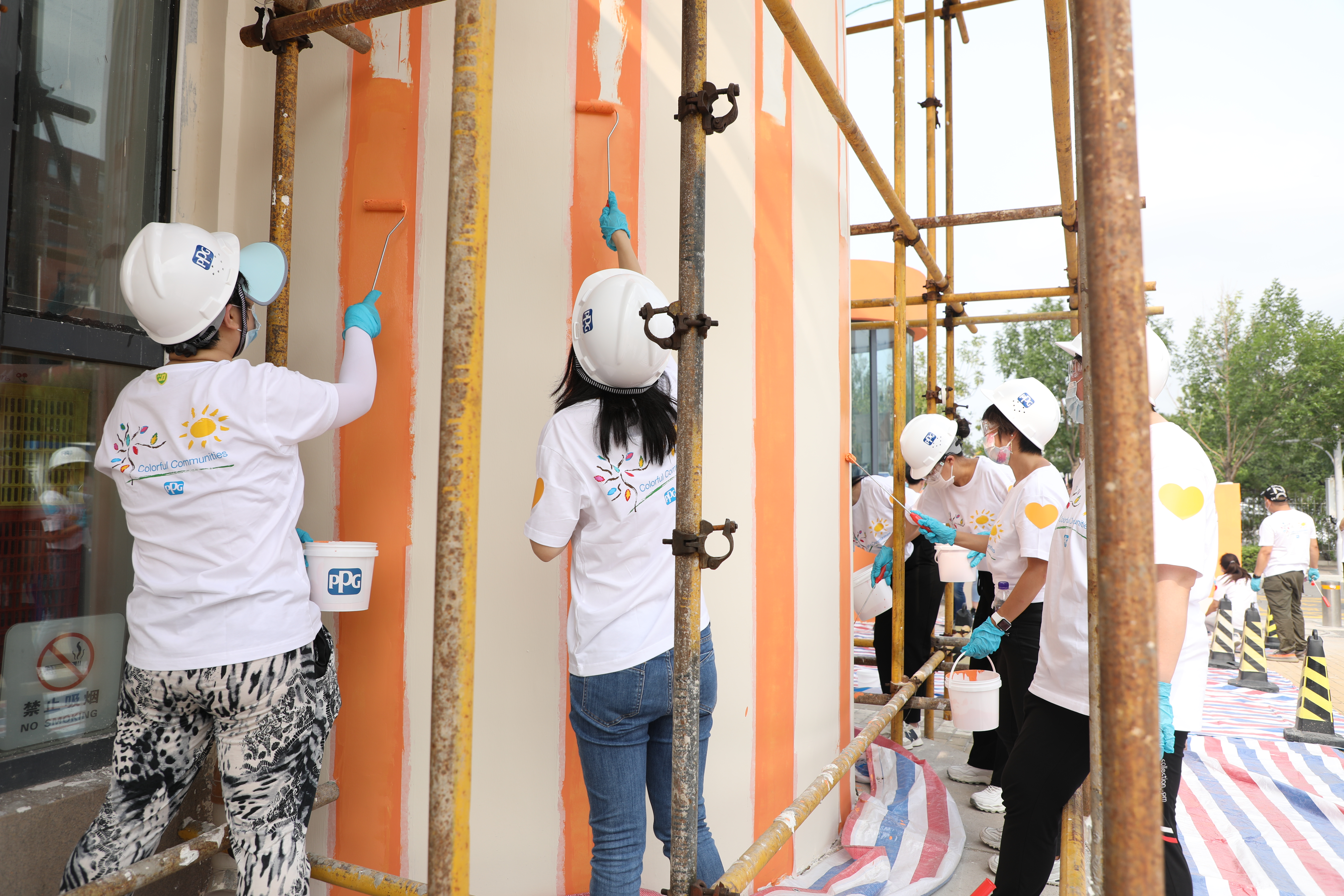 The Colorful Communities program provides PPG volunteers and products along with financial contributions to bring color and vitality to communities where the company operates around the world, such as in Tianjin, where PPG has a production facility and global coatings innovation center.
